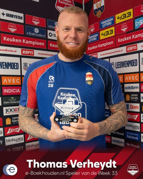 Op basis van statistieken bestaande uit o.a. goals, clean sheets, succesvolle dribbels, succesvolle passes etc. worden er drie spelers genomineerd voor de titel e-Boekhouden.nl Speler van de Week. Breng nu je stem uit en maak kans op twee wedstrijdtickets voor een Keuken Kampioen Divisie-wedstrijd. De speler met de meeste awards ontvangt de Wildcard voor Speler van het Seizoen!